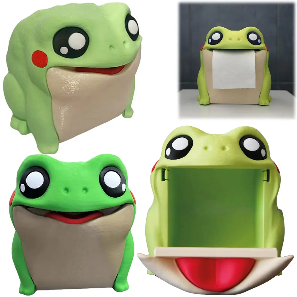 Cute Frog Toilet Paper Dispenser Interactive Frog Flip Toilet Roll Paper Case Cartoon Bathroom Organizer for Bathroom Home Decoration